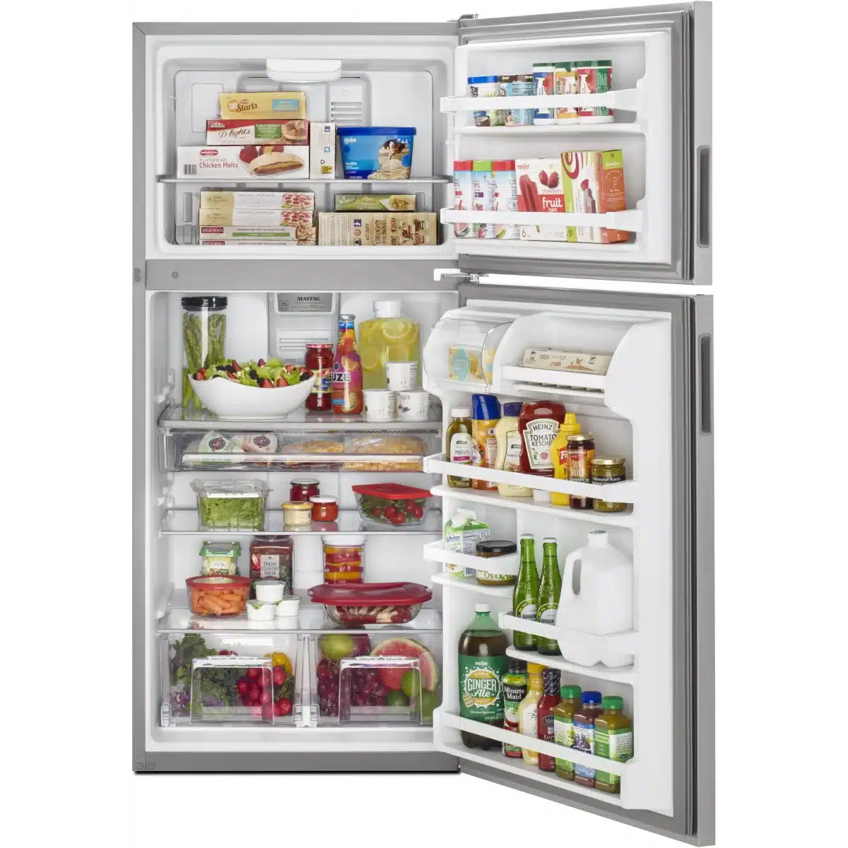 Maytag top-freezer refrigerators are built to hold the cold with features like the Power Cold feature that chills down the refrigerator to help keep everything cool with the touch of a button-even if the whole family’s been browsing with the door open. Plus, fingerprint resistant stainless steel keeps this fridges looking great. Inside this 18 cu. ft. model you’ll also find the BRIGHT SERIES LED lighting. It casts a bright, white light and uses less energy than incandescent bulbs.