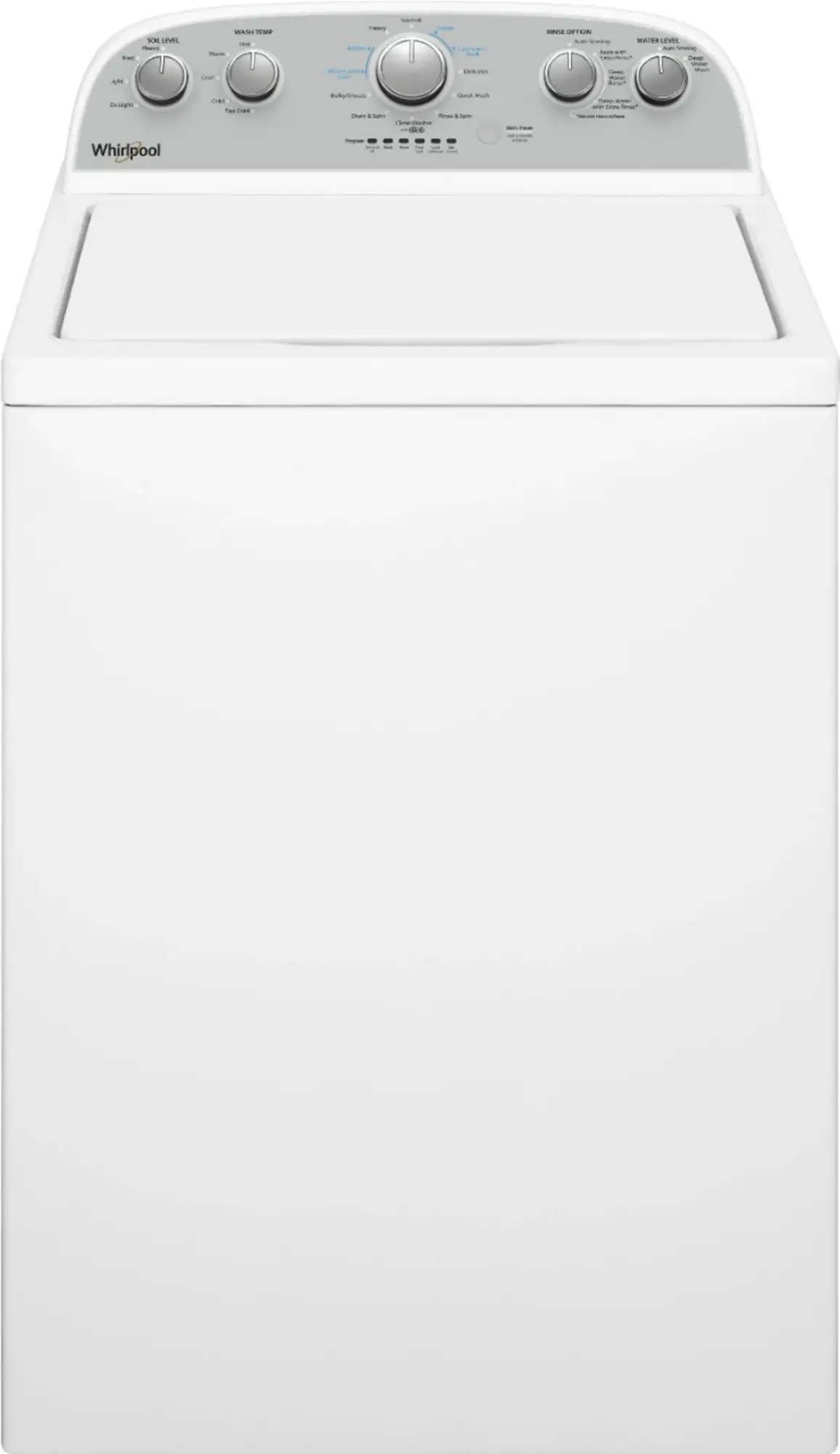 Take control of laundry day chores with this 27-inch Whirlpool top load washer. Its 3.8 cu. ft. capacity provides enough space for bulky items, and the two way wash action agitator handles tough, heavily soiled loads. The Auto Sensing feature of this Whirlpool top load washer automatically adjusts water levels based on load size to save energy.