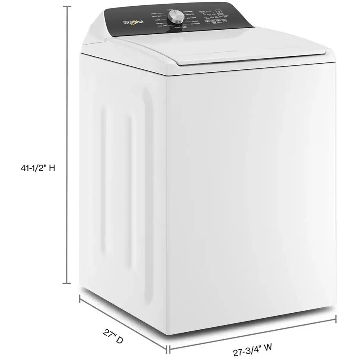 Take control of laundry day chores with this 27-inch Whirlpool top load washer. Its 3.8 cu. ft. capacity provides enough space for bulky items, and the two way wash action agitator handles tough, heavily soiled loads. The Auto Sensing feature of this Whirlpool top load washer automatically adjusts water levels based on load size to save energy.
